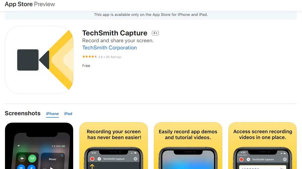 - Techsmith Capture – Smart Screen Recorder for iPhone