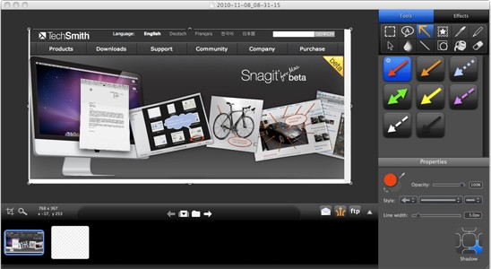 Image Editing – Being able to quickly and easily edit images is big part of screen capture and Snagit does this quite well. With a group of tools you can do a myriad of alterations and touchups to your images.