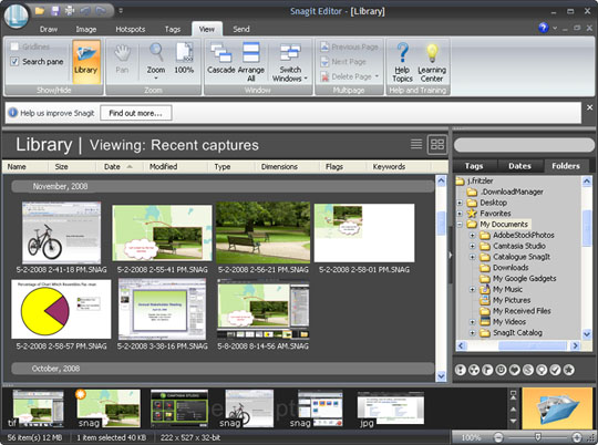 Organizing – Finding files that you saved can be time consuming and annoying. However, Snagit for Windows and Mac makes it easier by automatically setting up a library for the files to be saved to.