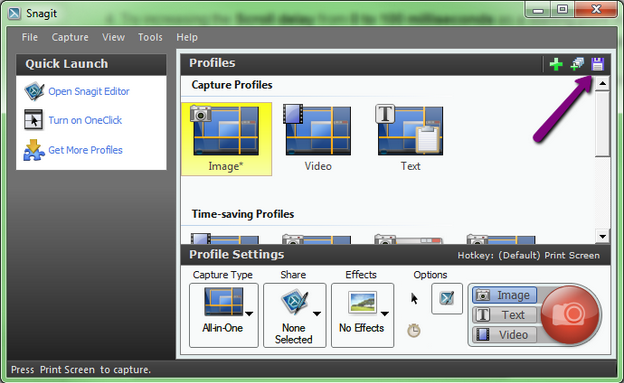 Step 6: Oneclick interface allows you to capture the window with one click. It is a docked capture interface and provides ever present access to the capture window. Keep the mouse over the interface and click the capture button.